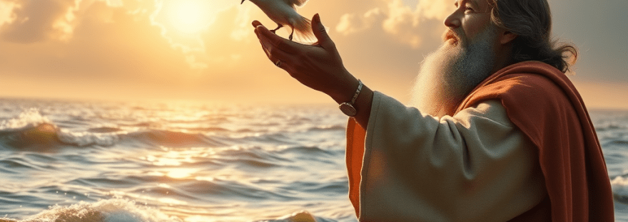The dove in Noah’s story played a significant role in initiating the start of a new era. Noah was selected to rebuild civilization on a planet which had been washed clean by the flood.
